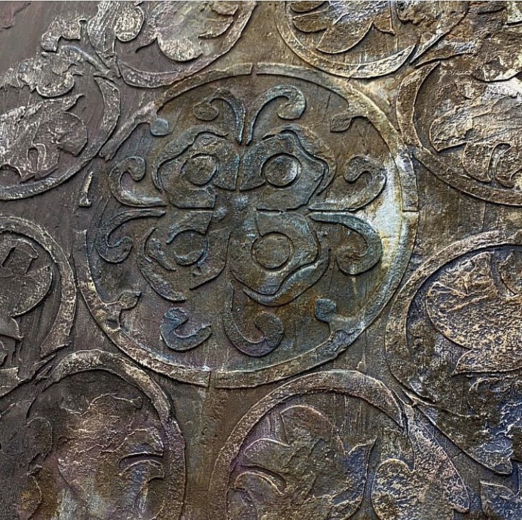 Круглая розетка, которую можно применить как в роли имитации ковки на потолке, двери, так и на стенах.